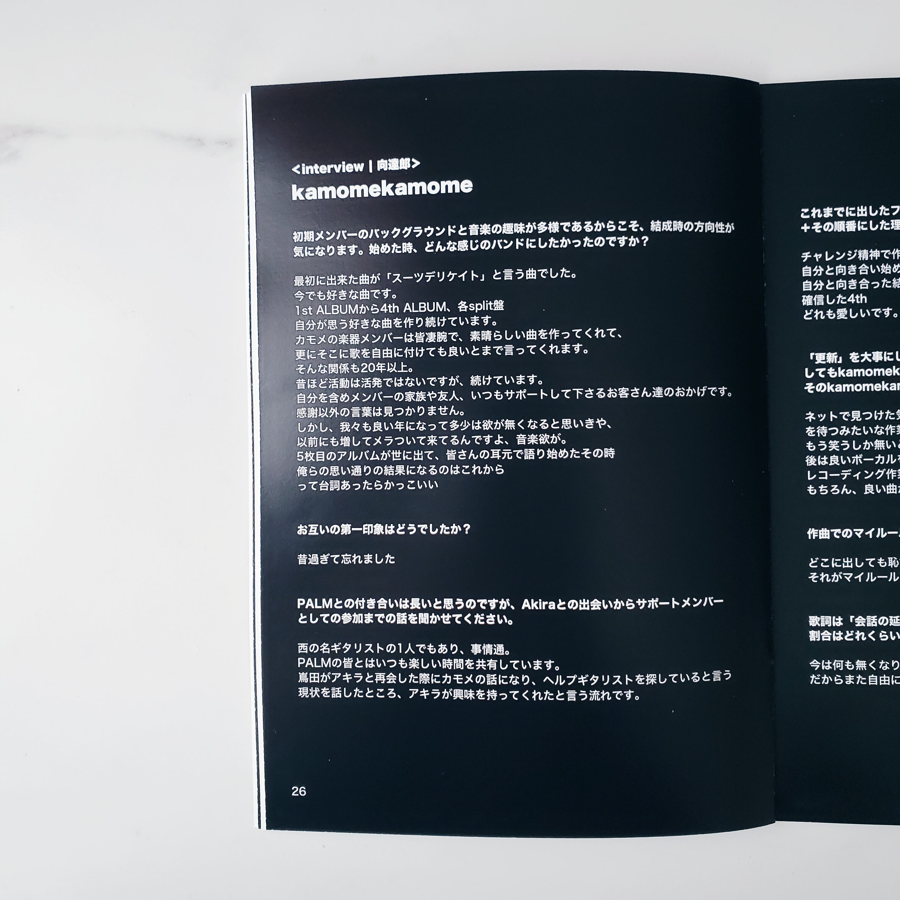 パラレルな課題のビジュアル解釈と、お互いの思い出から現在の考えかたや趣味まで、長いバンド歴を振り返りながらいろいろ語るインタビュー収録。